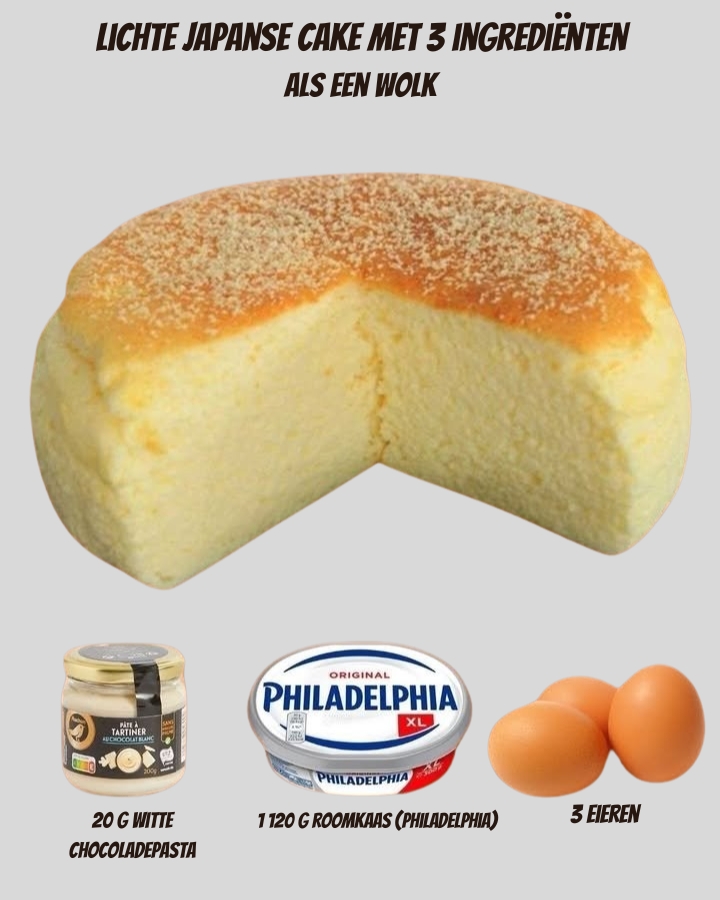 Verwen uzelf met deze **Japanse witte chocoladetaart**, waarin de delicate romigheid van witte chocolade zich combineert met de zachte structuur van eieren en smeerkaas tot een licht, bijna wolkachtig gerecht. Gemaakt zonder bloem of boter is dit een eenvoudige maar luxueuze twist op klassieke cheesecake – perfect voor wie zoekt naar iets unieks maar toch simpel.
