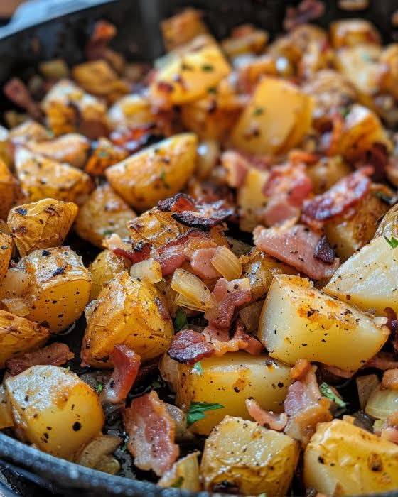 Er gaat niets boven de troostende omhelzing van een ouderwetse zuidelijke spekschotel. Dit recept heeft een belangrijke plaats in het kookboek van mijn familie en wordt van generatie op generatie doorgegeven. Dit gerecht werd oorspronkelijk bedacht tijdens de Grote Depressie, toen zuinig koken essentieel was, en heeft de tand des tijds doorstaan. Met stevige aardappelen die perfect sudderen in de rijke, rokerige smaak van spek, is elke hap een terugkeer naar eenvoudigere tijden. Het is ideaal voor een gezellig diner of als bijgerecht tijdens een familiebijeenkomst waar verhalen en eten op een gelijkwaardige manier worden gedeeld.