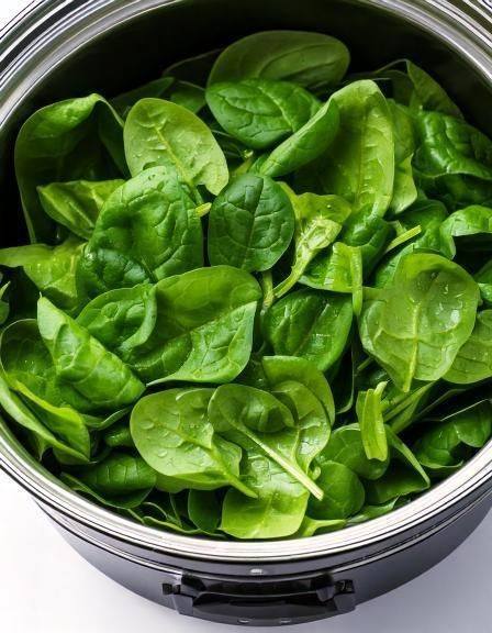 Doe rauwe spinaziebladeren in een slowcooker met deze 3 ingrediënten. Het perfecte comfortfood.