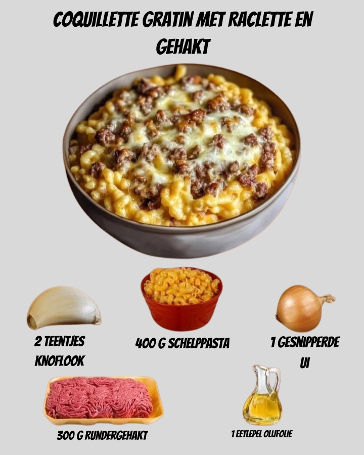 Verwen uzelf met deze **zelfgemaakte gratin met kleine pasta, gehakt en raclettekaas**, waarin de intense rijkdom van rundvlees samenkomen met de romige binding van crème fraîche en de zoete noot van smeltende kaas tot een verzadigend gerecht dat binnen 45 minuten klaarstaat. Gemaakt zonder complexe stappen maar rijk aan sfeer en balans, is dit gerecht perfect als gezinsdiner, twist op klassieke pastagerechten of verwenmoment tijdens de week.