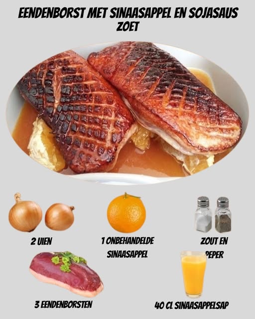 Verwen uzelf met dit **elegante gerecht van eendenborst**, gecombineerd met de frisse noot van verse sinaasappel en de rijke zoetheid van sojasaus. Dit gerecht is een perfecte balans tussen krachtige smaken en verfijnde presentatie – ideaal voor een formele avondmaaltijd of een bijzondere zondagse lunch.