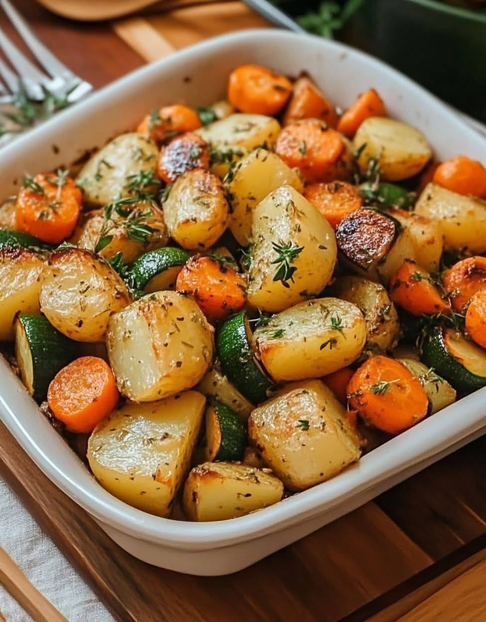 🥔 Geroosterde aardappelen met knoflook, kruiden, wortelen en courgette