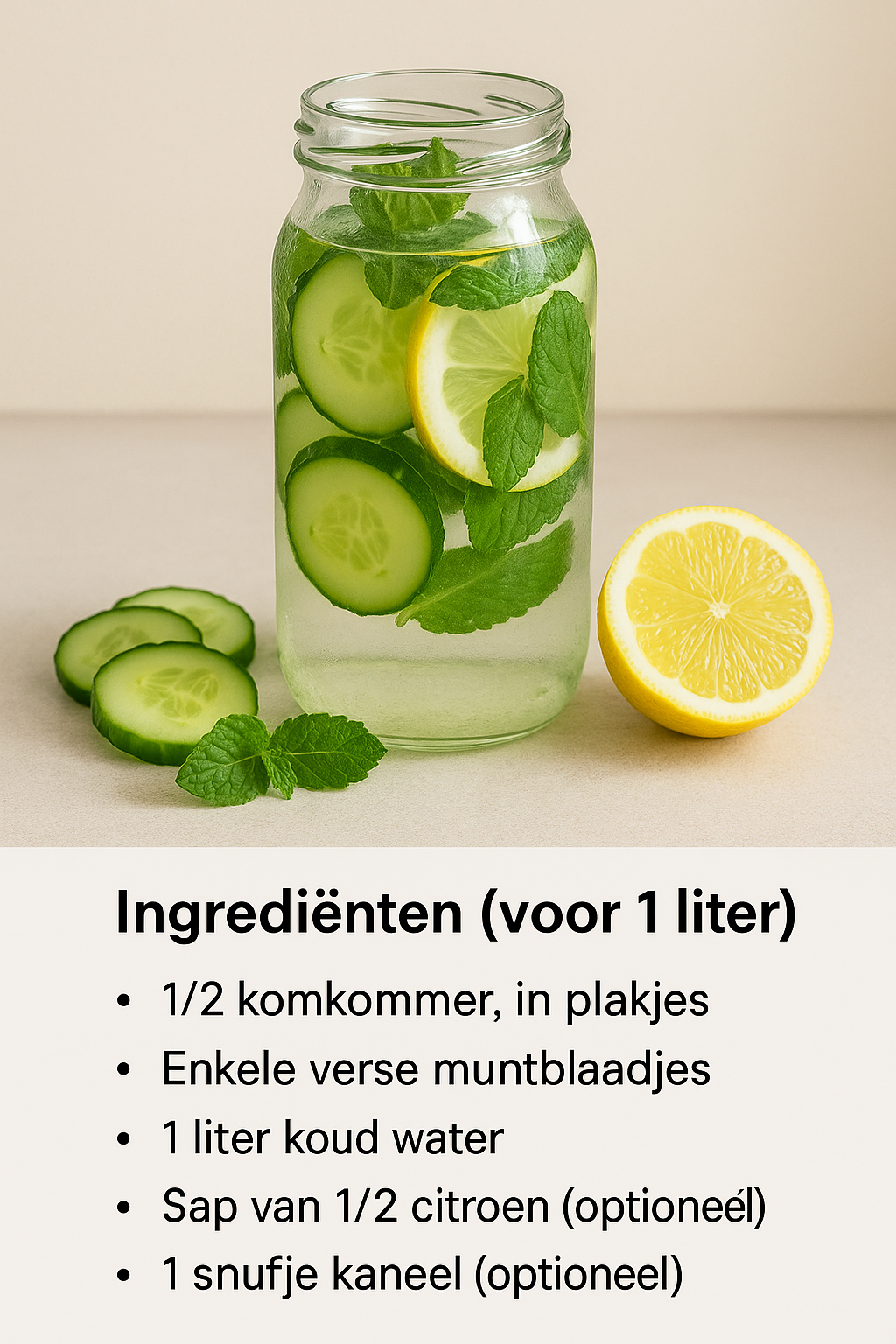 - Sap van 1/2 citroen (optioneel)** (voor extra antioxidanten en vetverbranding)