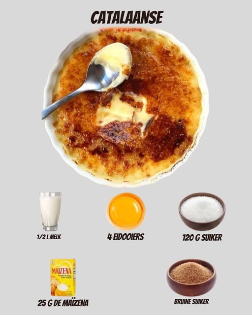 De Catalaanse crème is een klassiek Spaans dessert dat simpel in bereiding is, maar eruitziet en smaakt alsof het rechtstreeks uit een sterrenkeuken komt. Bekend vanwege haar gladde, romige textuur en de subtiel geurende kaneellaag bovenop, is dit gerecht ideaal voor wie op zoek is naar iets verfijnds zonder veel werk.