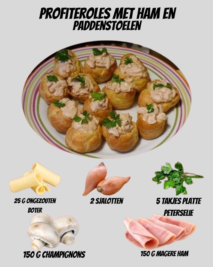 Ontdek deze Heerlijke Profiteroles met Ham en Champignons ✨🍴 Perfect voor een Origineel Voorgerecht of Aperitiefhapje!