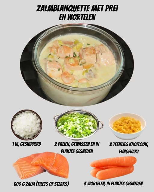 Deze zalmroomschotel is een warm, romig en verzadigend gerecht dat comfortfood combineert met voedingswaarde. Met haar rijke roomsaus, malse zalm en gezonde groenten zoals wortel en prei is dit de ideale maaltijd om op te smeren over rijst, pasta of aardappelpuree.