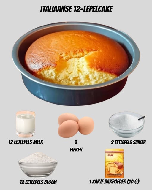 Deze Italiaanse cake met 12 lepels is een klassieker die eenvoud en rijke smaak combineert tot een heerlijk resultaat. Het bijzondere aan dit recept is dat je geen weegschaal nodig hebt – alles wordt gemeten met een gewone eetlepel. Met haar luchtige structuur, goudbruine korst en vochtige binnenkant is deze cake perfect als toegift na de maaltijd of als traktatie bij de koffie.