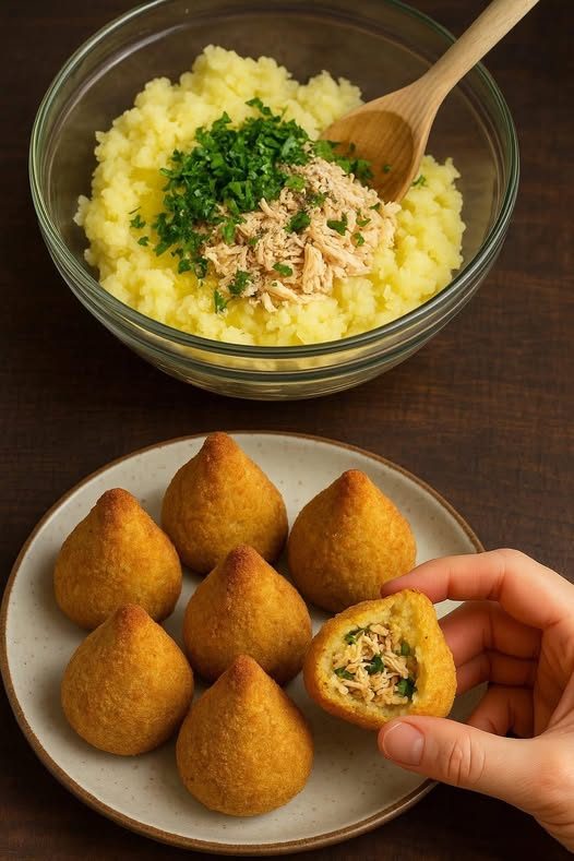 Kyckling Accras: Ett läckert, krispigt mellanmål som kommer att glädja dina smaklökar! Perfekt som förrätt eller en lättare måltid. 🍽️ ✨ Ingredienser: – 300 g rå kycklingfilé – 150 g mjöl – 1/2 påse bakpulver – 1 ägg – 1 liten lök – Ytterligare kryddor (salt, peppar, persilja) efter behov Instruktioner: Fortsättning på nästa sida
