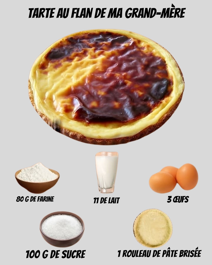 Cette recette familiale allie légèreté du flan traditionnel à la richesse de la pâte brisée beurrée. En quelques étapes seulement, vous obtenez un dessert absolument irrésistible, idéal pour le goûter, le dimanche après-midi ou même comme base pour un buffet sucré. Alors, prêts à retrouver les saveurs d’autrefois ?