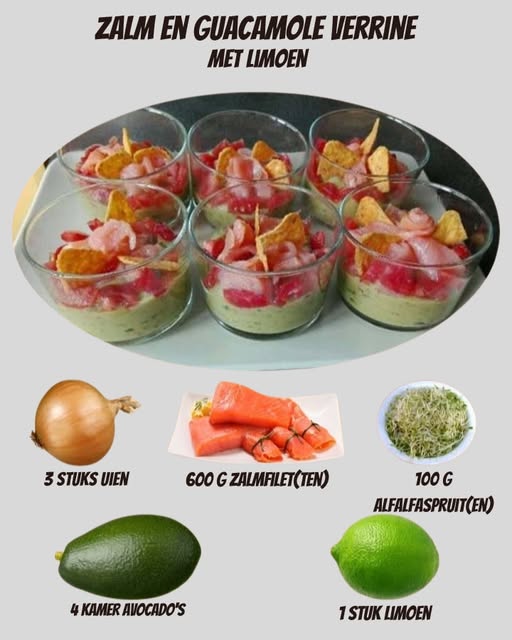 Verwen uw gasten met deze verfijnde en frisse glaasjehapjes die de delicate smaak van zalm combineren met de romige, pikante noot van zelfgemaakte guacamole. Dit gerecht is niet alleen een oogstrelende aanblik op elke borrelplank of tapasplaat, maar ook een waar genot voor je smaakpapillen. Of u nu zoekt naar iets lichts als aperitief of gewoon wilt verwennen met een gezonde twist – deze glaasjes zijn perfect!