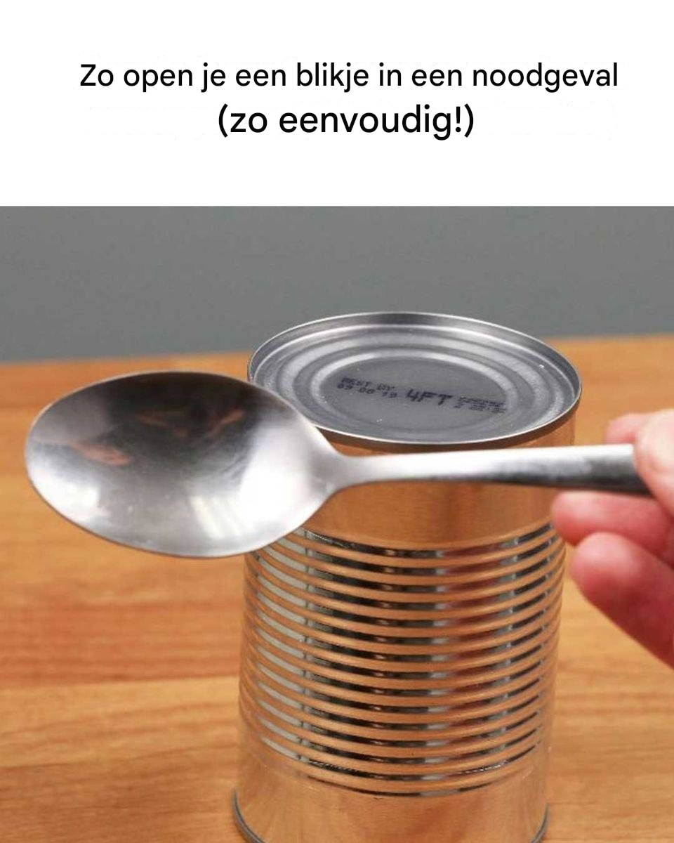 Met sterke polsen en een stevige lepel zou je het deksel van je blik moeten kunnen verwijderen.